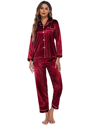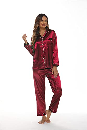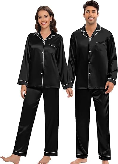 SHOWDAY - طقم بيجامة من قطعتين من الدانتيل، طقم بيجامة متطابقة للأزواج من الساتان الحريري بأزرار سفلية وأكمام طويلة، طقم بيجامة مكون من قطعتين ملابس نوم قصيرة الأكمام من شو داي
