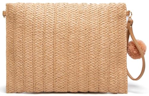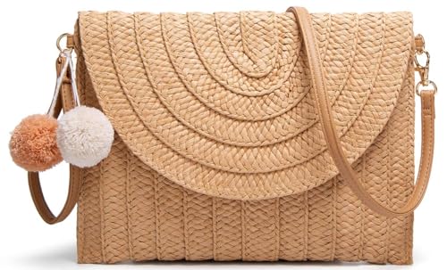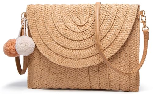 SHOWDAY - شنطة كتف حريمي من القش منسوجة يدويًا قش بوم شو داي، كروس بتصميم ظرف للشاطئ والصيف