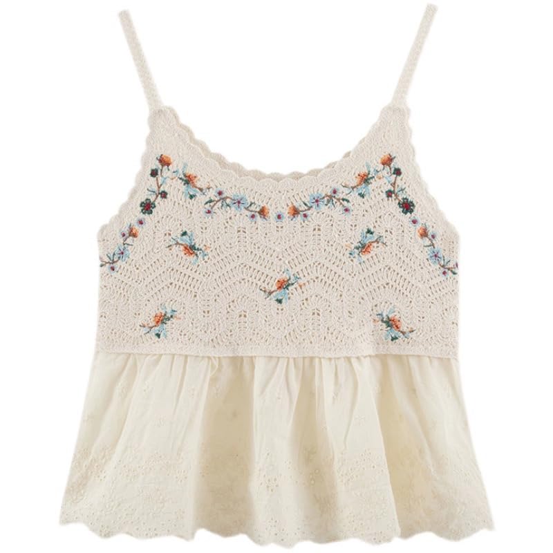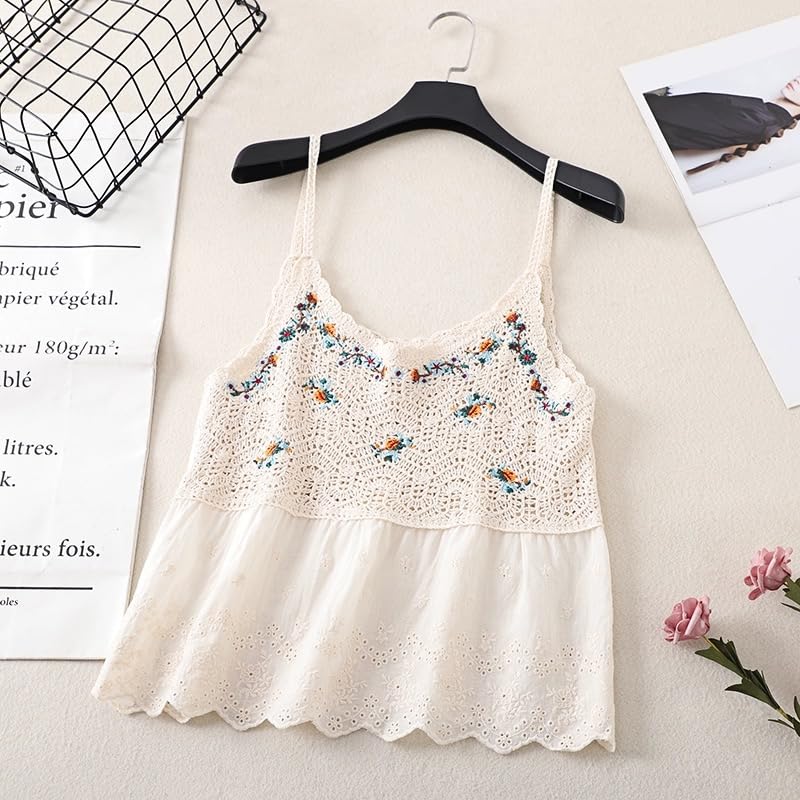 SHOWDAY - بلوزة كروشيه صيفية بدون أكمام للنساء من شو داي، بحمالات رفيعة مطرزة بالزهور الملونة، سترة واي 2 كيه بوهو كاش مايو، البوليستر