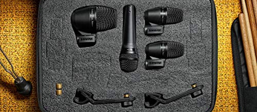Shure - طقم ميكروفونات من شور مجموعة 4 قطع موديل PGADRUMKIT4 XLR هايبر كارديويد أسود