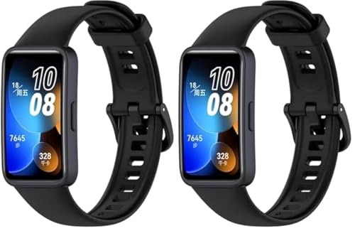 Generic - سوار بديل من السيليكون متوافق مع هواوي باند 8/9 (أسود) (عبوة من قطعتين)