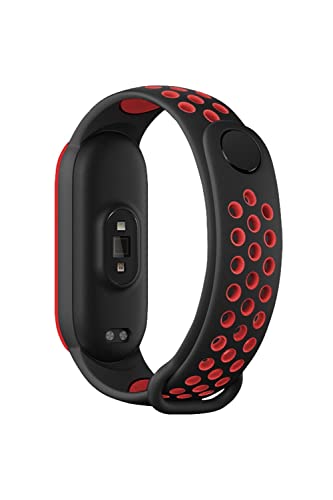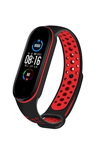 Generic - سوار بديل من السيليكون لساعة مي باند 5 -مي 6 بتصميم جيد التهوية شاومي و5 5- الذكية لون اسود واحمر للجنسين عدد 1