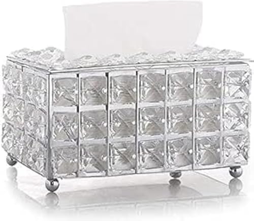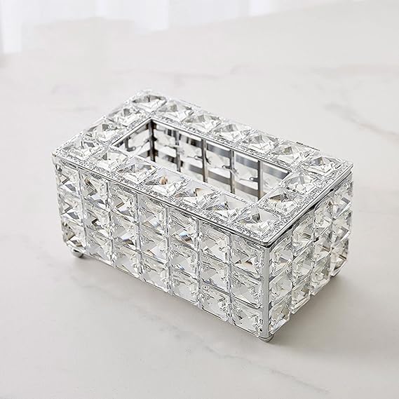 Spaceshoop - علبة مناديل كريستال لامعة بلون فضي