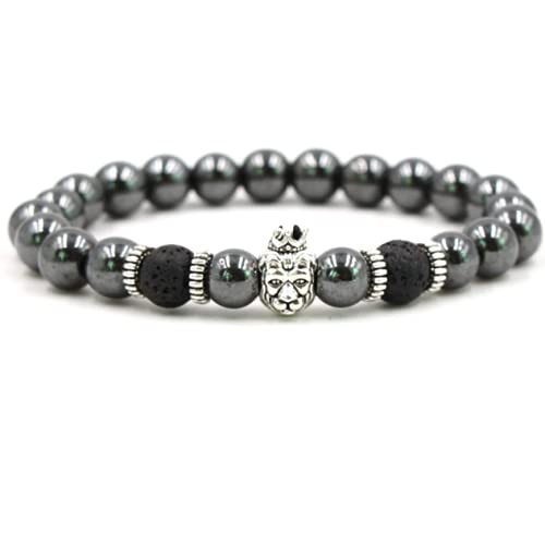 Other - أسوره حجر هيماتيت رمادي غامق بوجه اسد فضي، للجنسين