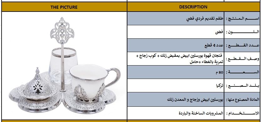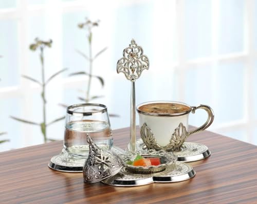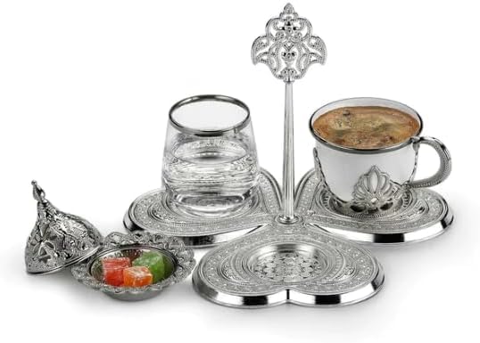 Home and Kitchen Art - طقم تقديم قهوة فردي فضي ، صنع في تركي