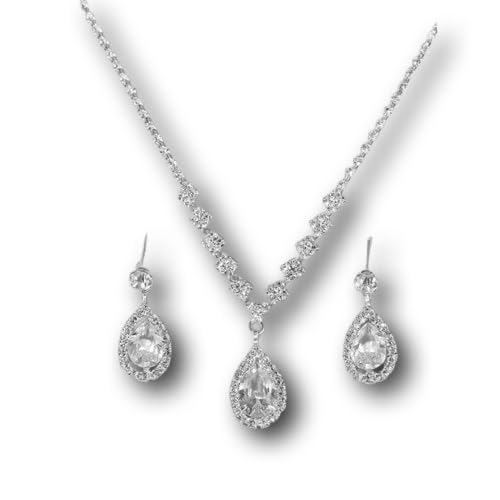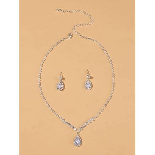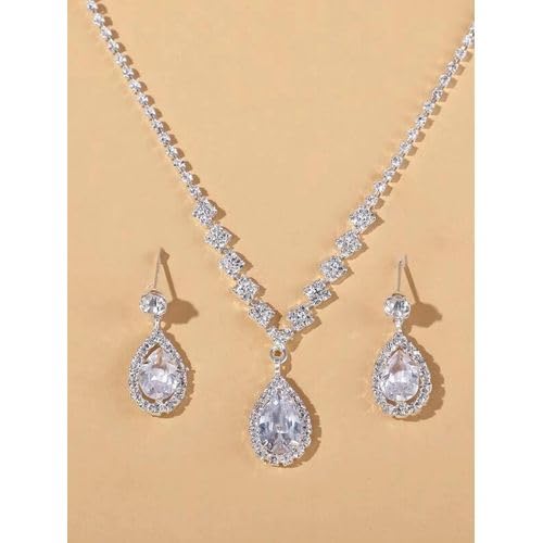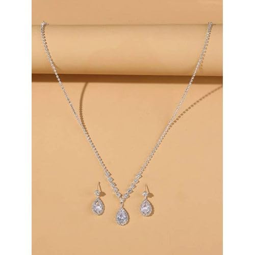 Generic - مجموعة عقد و حلق مرصع بالفصوص بالزركون بالون الفضي