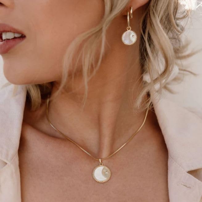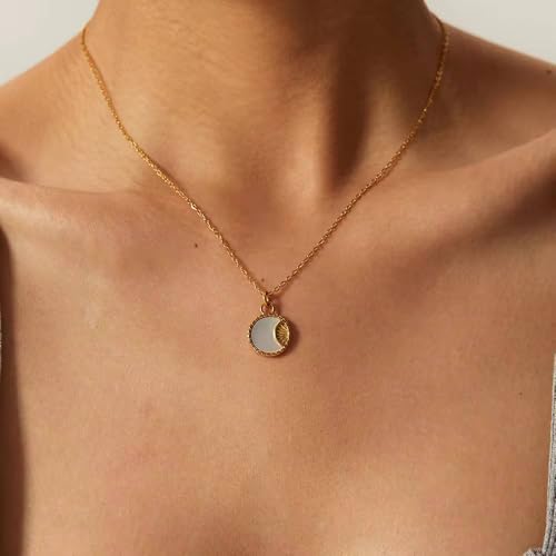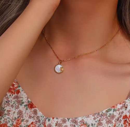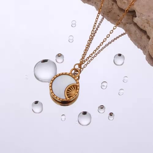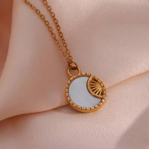 Generic - قلادة بدلاية على شكل صدفة وقمر وشمس للنساء من الستانلس ستيل 316l مطلية بالذهب من سيمبل فاشون تريندز