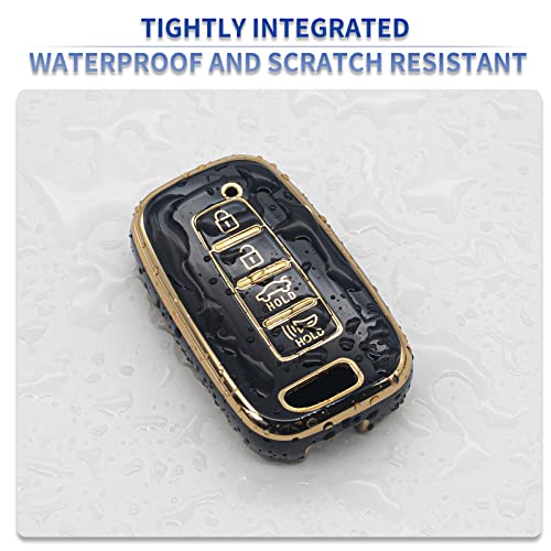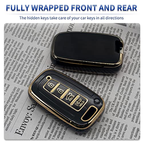 - حافظة حماية لمفتاح السيارة الذكي بحافة ذهبية من البولي يوريثين الحراري متوافقة مع هونداي ازيرا النترا جي تي ايكوس جينيسيس كوبيه سانتا اف اي سوناتا توكسون فيلوستر كيا بوريجو فورت سورينتو سول سبورتاج (يرجى التحقق من شكل جهاز التحكم عن بعد للدخول بدون مفتاح قبل الطلب)