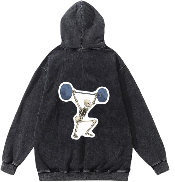 Generic - سترة بغطاء للرأس بتصميم هيكل عظمي لرفع الأثقال وظهر مغسول