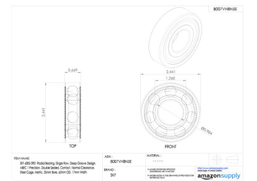 SKF - محمل كروي شائع skf6305 2RS1 من اس كيه اف