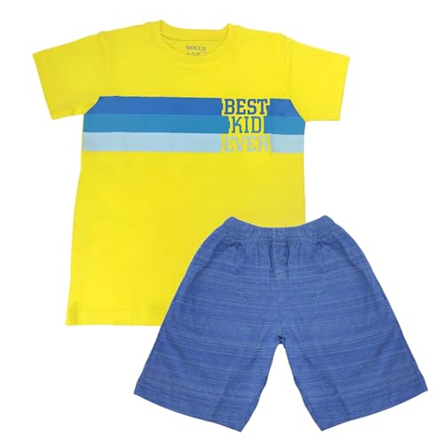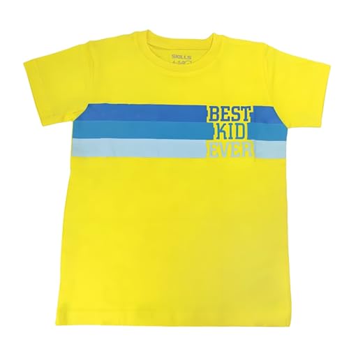 Skills - سكيلز طقم قطن مكون من قميص نصف كم وشورت بطباعة Best Kids Ever للاولاد بعمر 4 سنوات من قطعتين لون اصفر