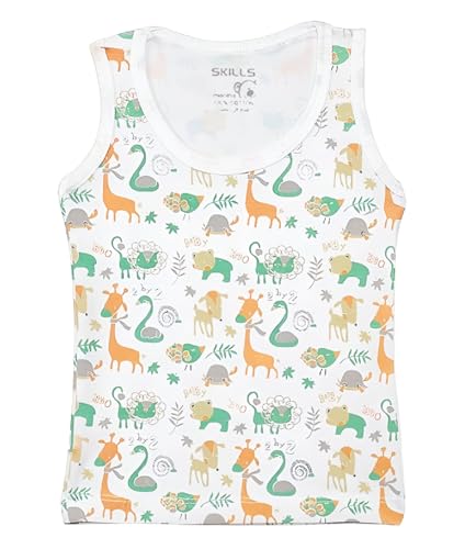 Skills - سكيلز طقم فانلة داخلية بدون اكمام برقبة دائرية مطبوع عليها حيوانات للبنات من 5 قطع