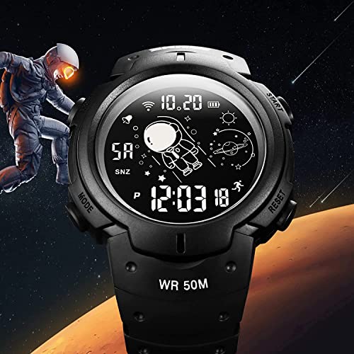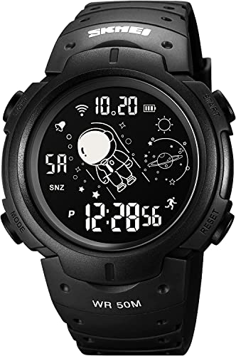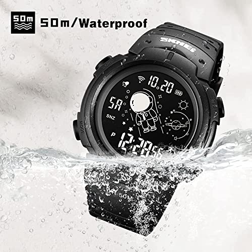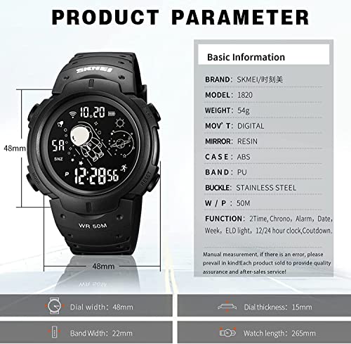 SKMEI - ساعة جيش رقمية للرجال من سكماي ، رياضية بشاشة ال اي دي عسكرية مقاومة للماء توقيت كاجوال مع منبه وعد تنازلي, أسود + ديجيتال
