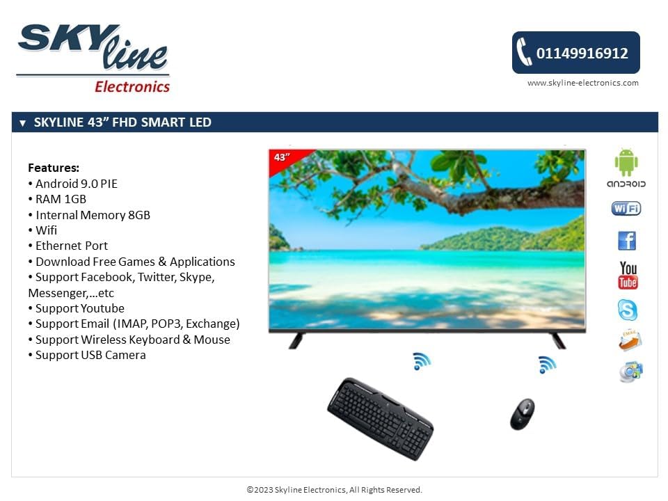 Skyline - تلفزيون LED بدون إطار FHD عالي الدقة 43 بوصة من سكاي لاين