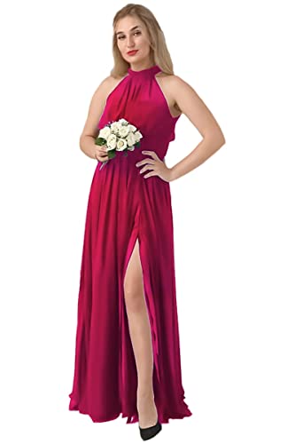 Generic - فستان شيفون بدون اكمام، بفتحة امامية من الاسفل ، للنساء