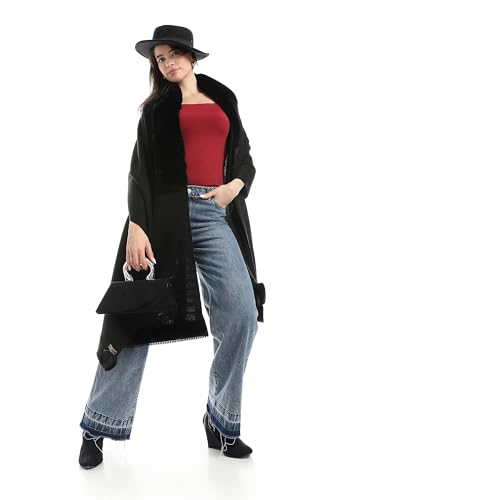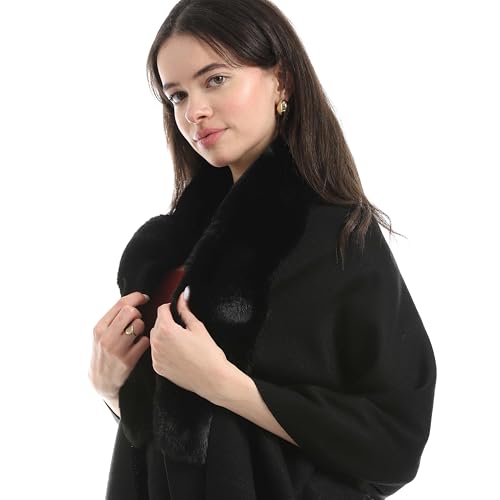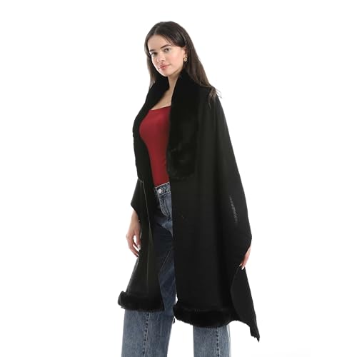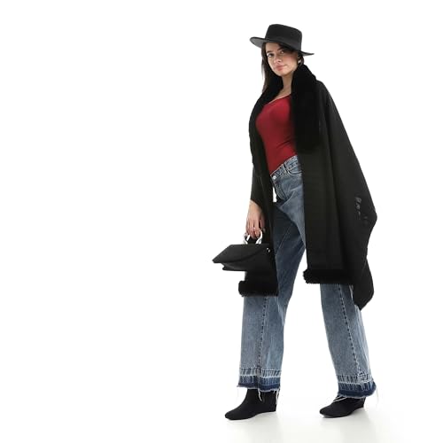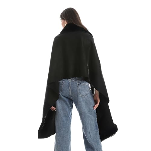 Red Circle - شال مضلع فاخر سهل الارتداء للنساء بلون اسود