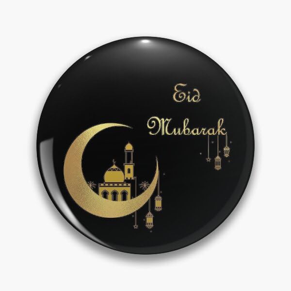 Generic - دبوس زينة بعبارة Eid Mubarak من اس ام 4 يو، أسود وذهبي، تصميم هلال إسلامي