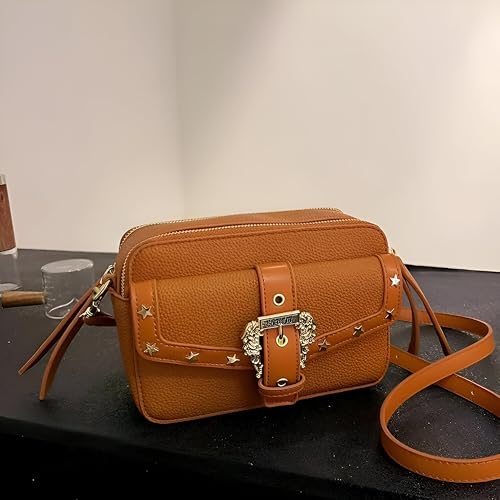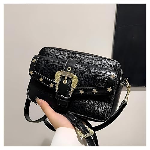 Generic - شنطة كروس صغيرة - نمط جلد اسود انثوي مع زينة نجوم، مساحات تخزين متعددة للاستخدام متعدد الاستخدامات، اغلاق بمشبك فضي لمظهر عصري انيق