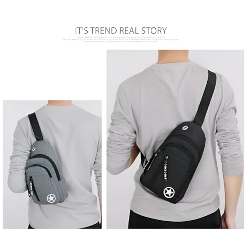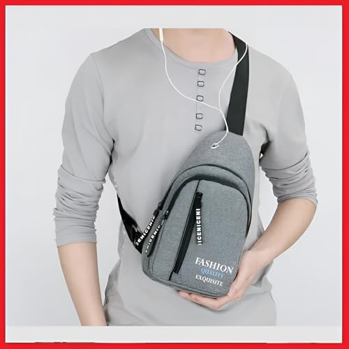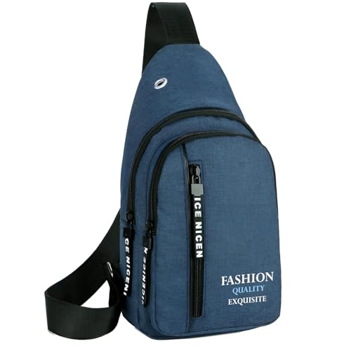 Plan A - شنطة كروس صغيرة شنطة ظهر صغيرة متعددة الاستخدامات على الصدر والكتف شنطة سفر من القماش السميك متعددة الجيوب شنطة سفر مقاومة للماء للرجال والنساء والأولاد مع فتحة لسماعة الأذن
