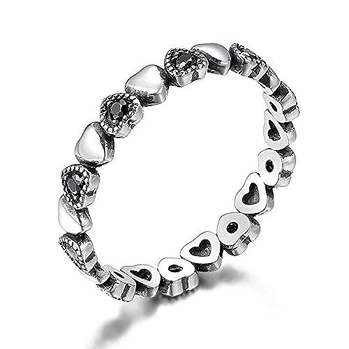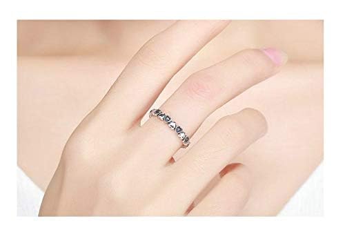 Generic - خاتم سمول هارتس مرصع بفصوص الزركون الاسود - مقاس 6، روديوم مطلي، للنساء