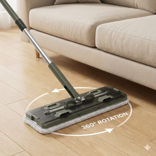- رأس ممسحة دوارة 360 درجة وتصميم نحيف: تم تصميم رأس الممسحة ليكون مسطحًا ونحيفًا للغاية مع مفصل مرن يدور 360 درجة. هذا يسمح للممسحة بالانزلاق بسهولة تحت الكنب، الأسرة، الطاولات، والوصول إلى الزوايا الضيقة وحواف الجدران لضمان عدم ترك أي بقعة دون تنظيف