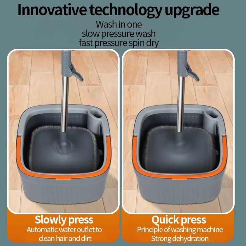 - يحتوي على جردل مربع يمكنه مسح وعصر وتنظيف بكفاءة.