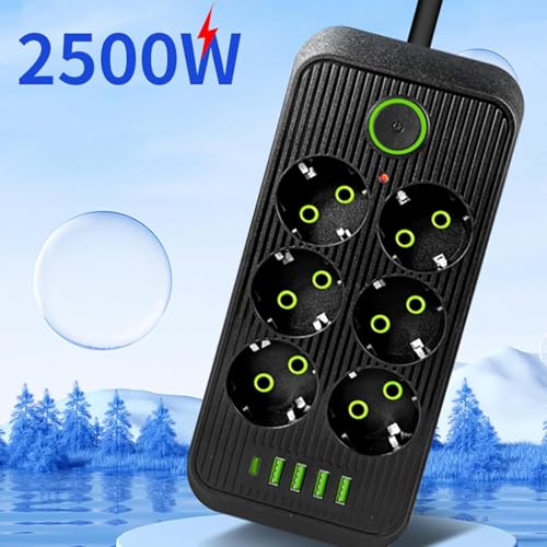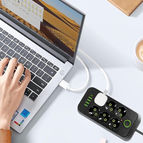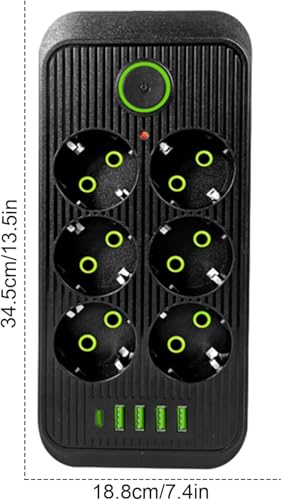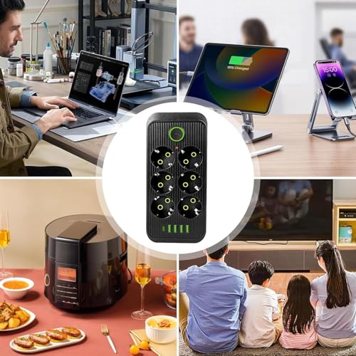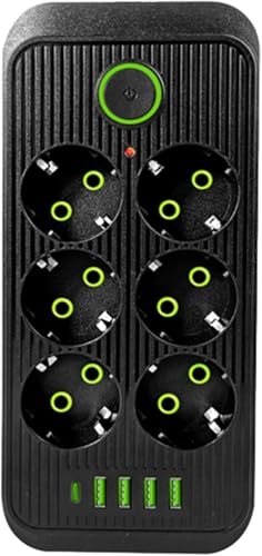 Generic - مشترك كهربائي ذكي بـ 4 منافذ USB C-Type حماية فائقة ضد الكهرباء تصميم أنيق – متعدد الاستخدامات في المنزل والمكتب (اسود, 6 منافذ)