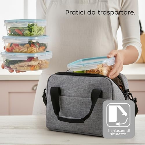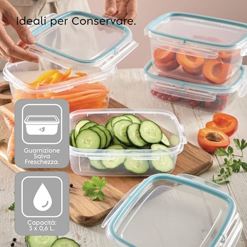 - مجموعة من 3 قطع من حاويات سنيبسلوك مستطيلة 0.6 لتر مناسبة للفريزر والميكروويف (بدون غطاء). يوفر إغلاق الغطاء ومشابك القفل الأربعة إغلاقًا محكمًا للحفاظ على رائحة الطعام. يمكن تكديسها في الثلاجة والفريزر ودولاب المؤن، آمنة للغسل في غسالة الأطباق. الخامة: حاوية بولي بروبيلين / غطاء بولي بروبيلين + حشية مطاط حراري مرن.