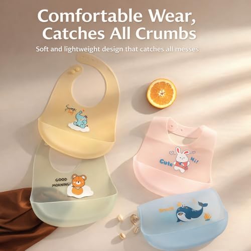 Generic - مريلة رضاعة من السيليكون الناعم مع اغلاق كبس، مريلة حضانة قابلة لاعادة الاستخدام والغسل للاطفال الصغار، تصميم حيوانات