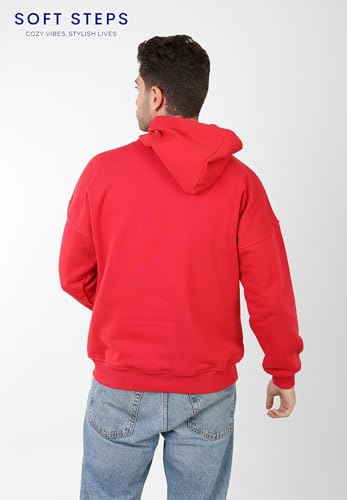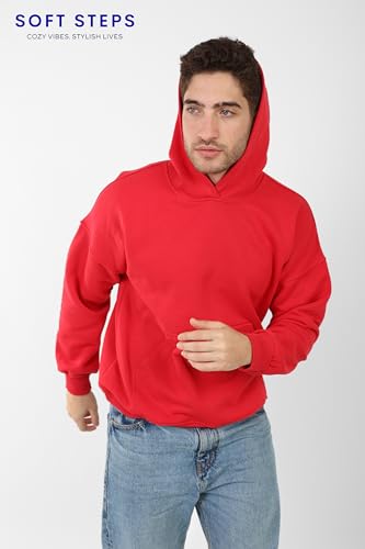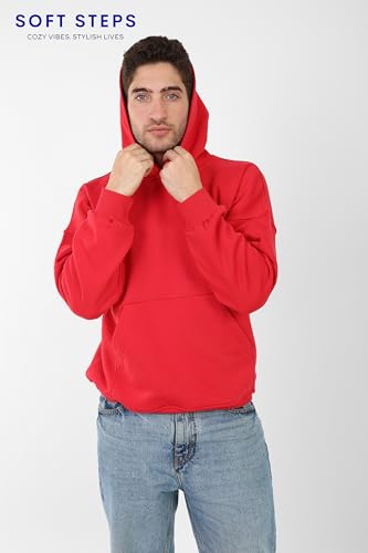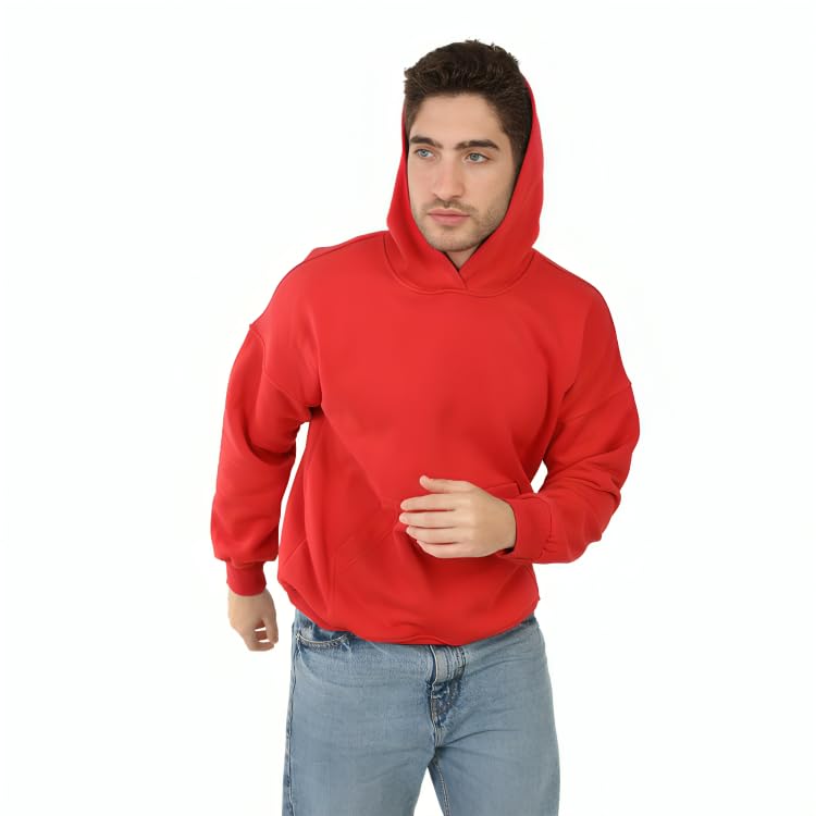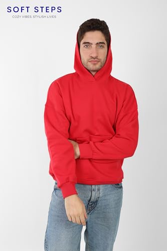 Generic - بلوفر بغطاء للرأس من القطن من سوفت ستيبس، قصة عادية، احمر (احمر، L)
