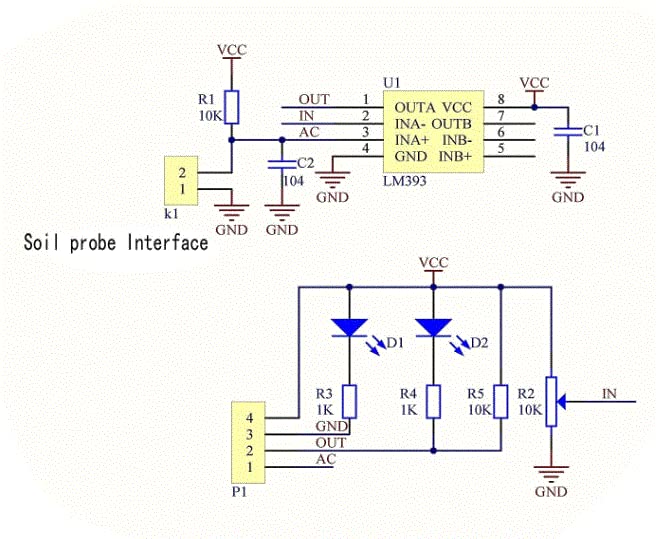 - مستشعر LM393 للكشف عن رطوبة التربة