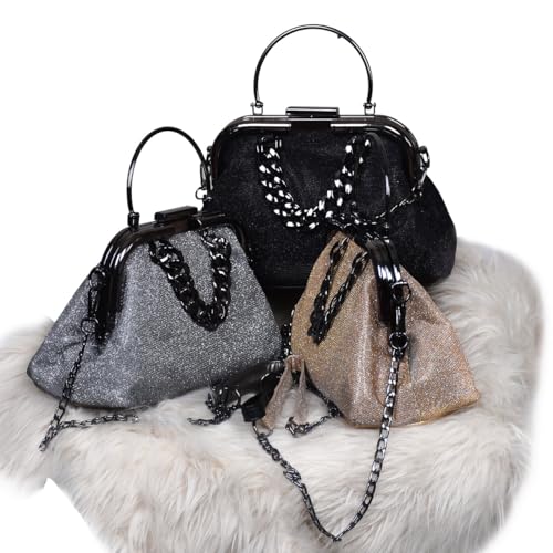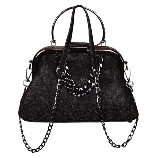 Generic - حقيبة يد صغيرة سواريه للنساء باللون الأسود مع سلسلة متقاطعة