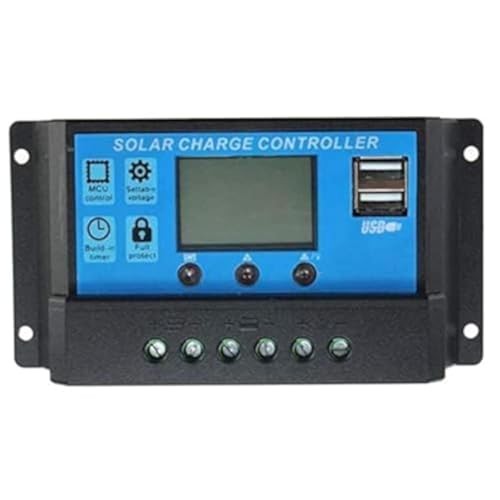Generic - شاحن متنقل يعمل بالطاقة الشمسية قدرة 12/ 24 فولت، 30 امبير بمنفذين USB، أسود