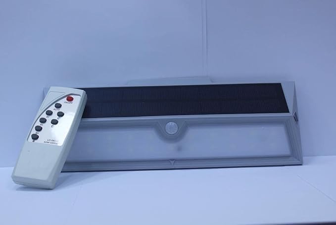 Generic - مصباح يعمل بالطاقة الشمسية، مع مستشعر حركة مقاوم للماء للأماكن الخارجية، مصباح ليد أبيض مع جهاز تحكم عن بعد