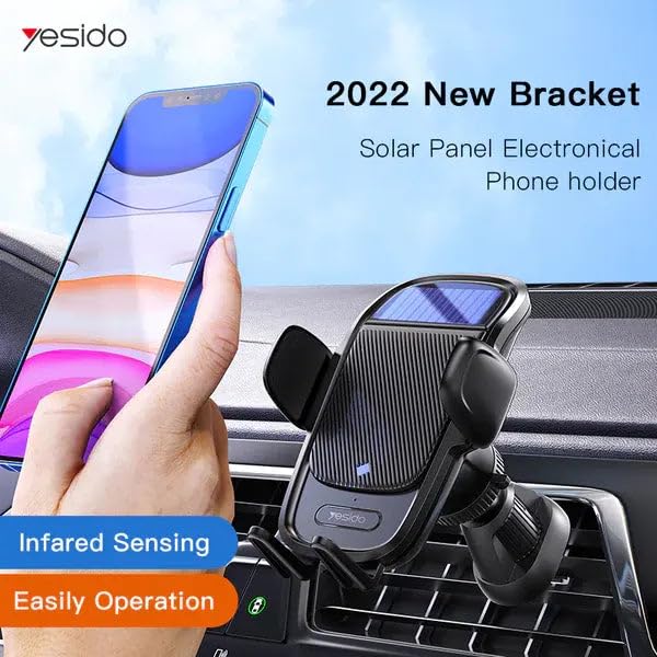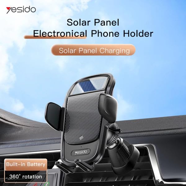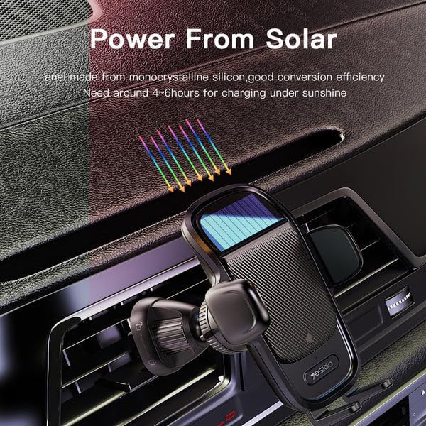 Generic - حامل هاتف يعمل بالطاقة الشمسية للسيارة، أسود