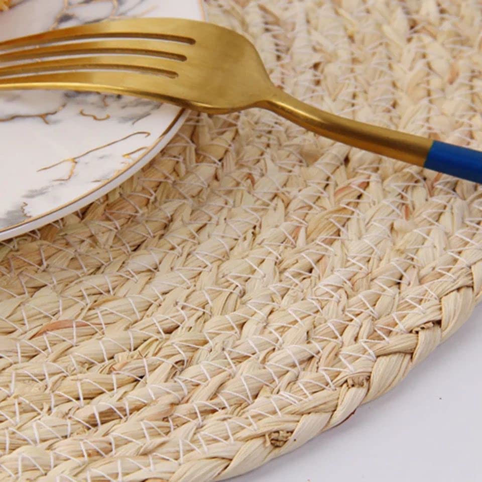 Generic - قواعد اكواب صلبة من الخوص بتصميم مضفر مقاس 37 سم تدوم طويلا ومضادة للانزلاق ومتعددة الوظائف، مفرش بولة عملي قابل لاعادة الاستخدام
