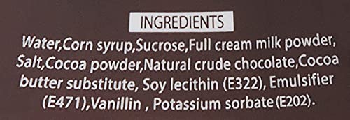 - سكر - ماء - لبن مخفف منزوع الدسم - كاكاو - عجينة كاكاو - زيدة كاكاو طبيعي - شراب ذرة مستحلبE440 - ملح - فانيلين
