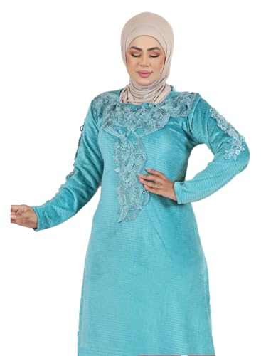 SONDOS FOR HOMEWEAR - عباية نسائية من سندس، مصنوعة من المخمل، متوفرة باللون النيفي والكاميل والتيل، مقاس موحد، بتصميم تقليدي شرق أوسطي