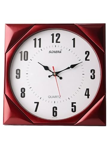 generic - ساعة حائط سونيرا -7091 - مربع احمر غامق اللون، بلاستيك، تناظري