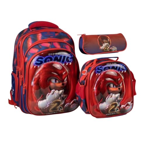 Generic - حقيبة ظهر سونيك مع مقلمة، تصميم أحمر وأزرق، مجموعة فيلم سونيك