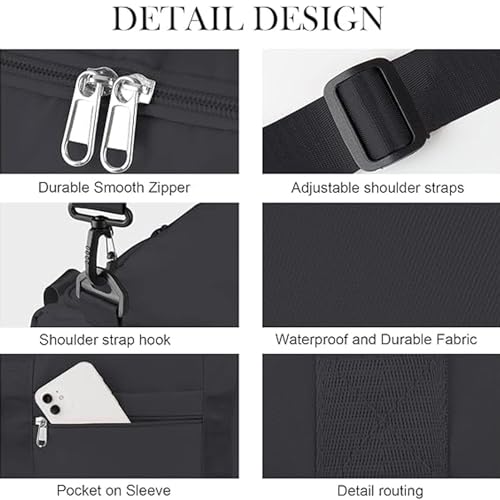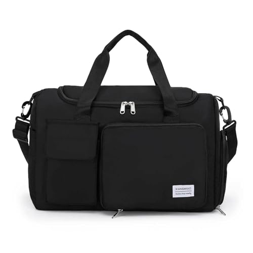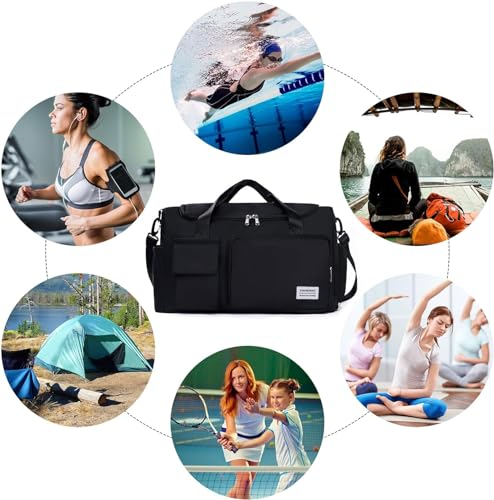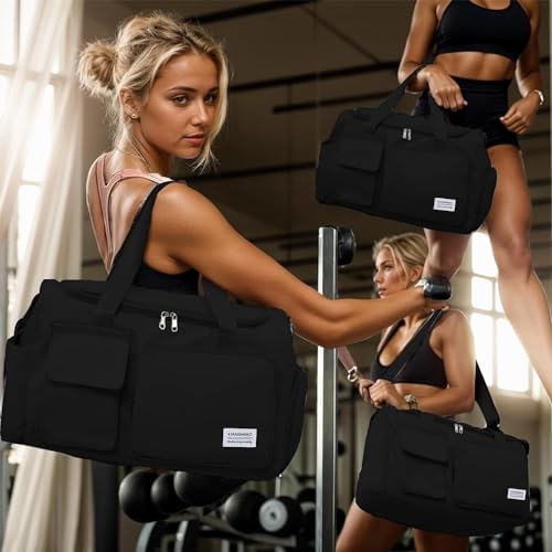 SOOFAM - شنطة دفل رياضية رجالي وحريمي للجيم من سوفام يد كبيرة توت القماش الخشن للسفر بجيب لفصل الملابس الجافة والرطبة لليوجا للحذاء ليلية - عطلة نهاية الأسبوع أسود البوليستر