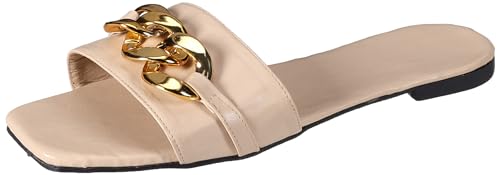 AUUXVA - شبشب فلات بطرف مربع مع حزام بسيط بسلسلة من سول 2 سول، بيج، مقاس 37 أوروبي