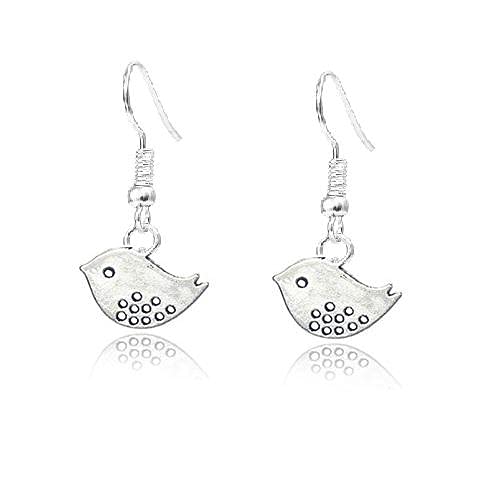 Generic - اقراط متدلية شكل عصفور فضى اللون، معدن، أحمر، للأنثى