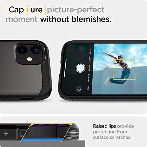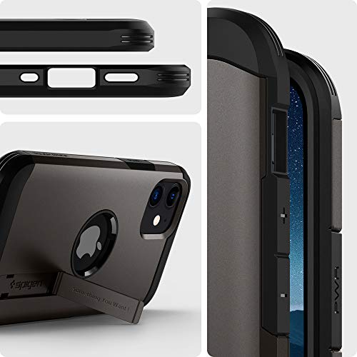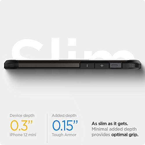 Spigen - جراب حماية من ارمور لموبايل ايفون 12 ميني سبايجن – اسود ورمادي بولي كربونات يوريثين اللدن بالحرارة