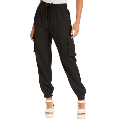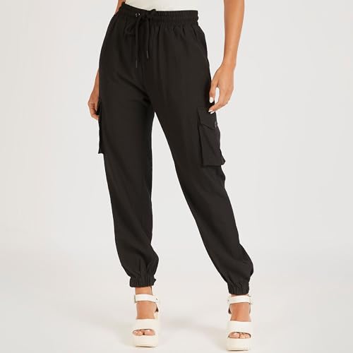 Splash - سبلاش بنطلون رياضي كارجو سادة متوسط الارتفاع برباط للاغلاق بلون اسود - مقاس 8 6292374111350
