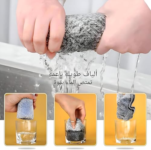- تضمن مادة المايكروفايبر عالية الامتصاص نقع الماء بسرعة وسهولة التعامل مع الانسكابات، مما يجعل هذه المناشف عملية للغاية للاستخدام في المطبخ مثل تجفيف الأطباق ومسح الأسطح والحفاظ على الطاولات خالية من البقع.