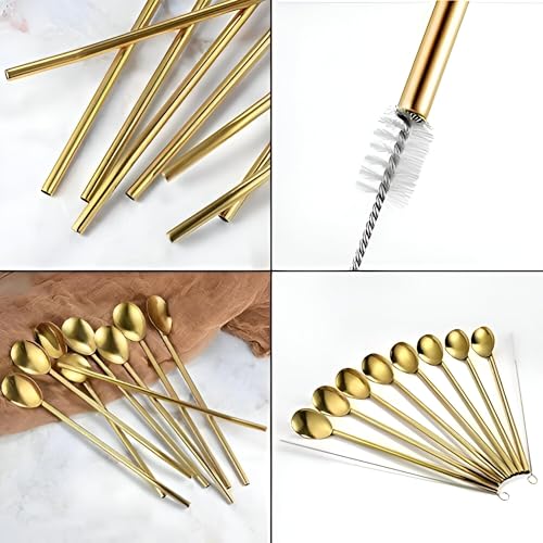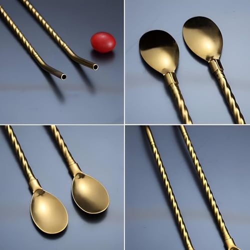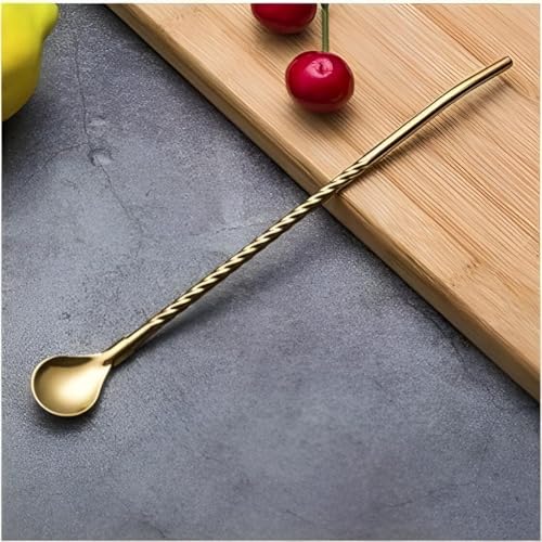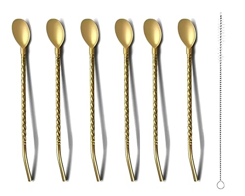 Generic - معالق - معالق من الفولاذ المقاوم للصدأ لتحريك مشروباتك المفضلة بشكل مثالي، بما في ذلك 6 معالق وفرشاة تنظيف للراحة (ذهبي)