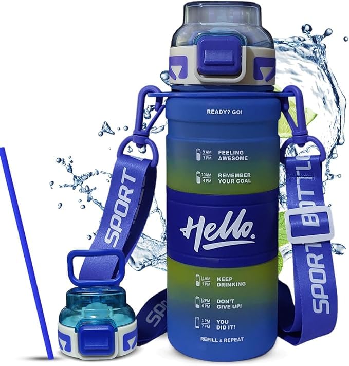 Generic - زجاجة مياه رياضية مانعة للتسرب شرب محمولة عصرية ومتينة للجيم واللياقة البدنية مع حزام خالية من مادة بيسفينول أ trx ازرق