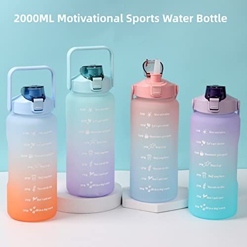 - 💪💪【اقتباسات تحفيزية وعلامات للوقت】- زجاجة مياه اللياقة البدنية الكبيرة سعة 2 لتر مع ماصة مزودة بمؤشرات مخصصة لوقت الشرب وبيانات قياس تحفيزية فريدة عليها، زجاجة المياه نصف جالون مع جهاز التتبع هي الخيار الأفضل لتذكيرك بالبقاء متحمسًا لشرب كمية كافية من الماء يوميًا. من المهم والسهل تحقيق أهداف اللياقة الصحية بما في ذلك فقدان الوزن وزيادة العضلات والحفاظ على رطوبتك وصحتها مع زجاجة المياه التحفيزية.