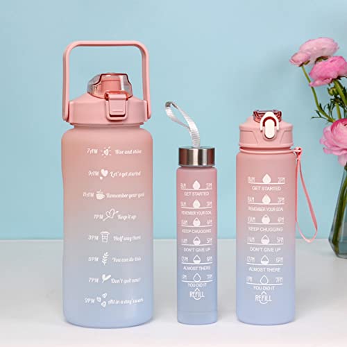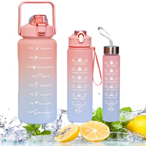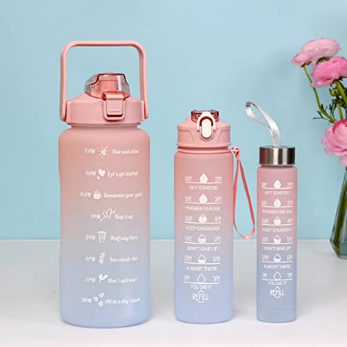 AIMBIGG - زجاجة مياه رياضية تحفيزية سعة 2 لتر بشفاطة وعلامة السعة كبيرة لصالة الألعاب الرياضية وركوب الدراجات للأطفال والمدرسة واللياقة البدنية في الهواء الطلق خالية من البيسفينول أ (بيتش بلو)، 3 قطع